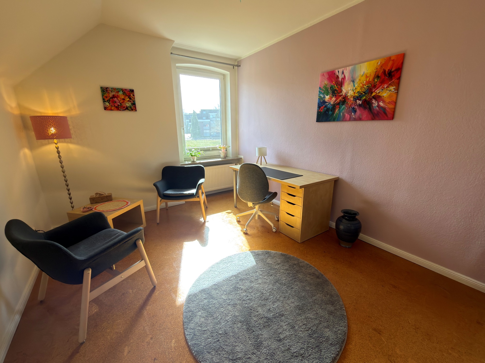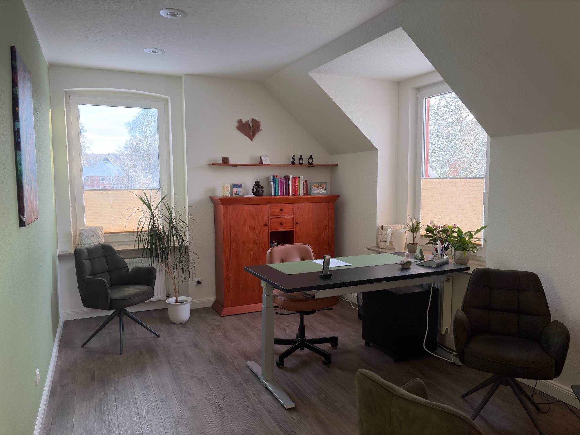 Unsere frisch renovierten Räume im 1. Obergeschoß eines alten Bauernhauses in Seevetal/ Maschen in der Nähe von Hamburg.
